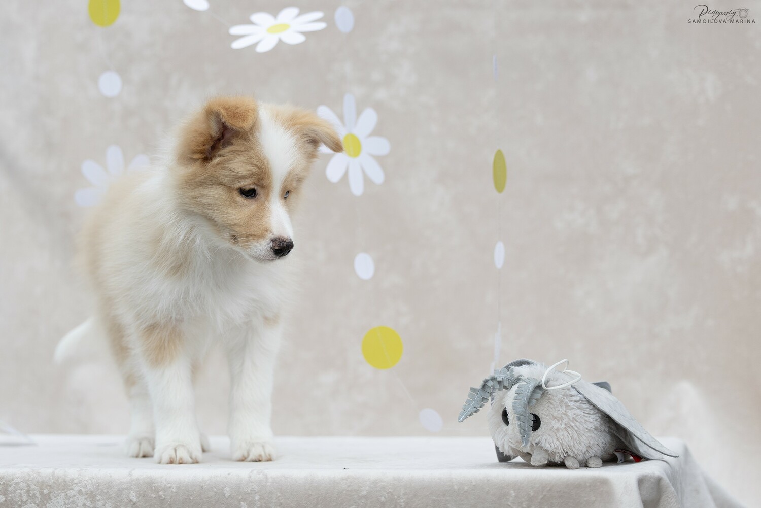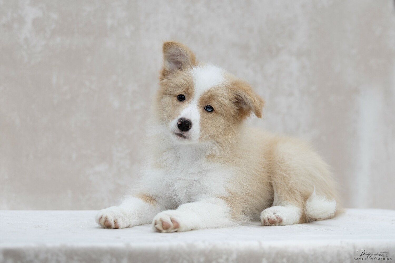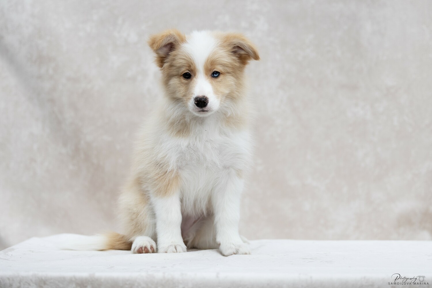 Продается девочка бордер колли окрас рыжий с белым. Один глазик голубая гетерохромия, возможно носитель мраморного окраса.